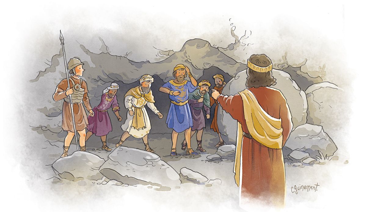 Or les cinq rois avaient fui et s’étaient cachés dans la grotte, à Maqqéda. 17 On rapporta à Josué : « Les cinq rois ont été retrouvés, cachés dans la grotte, à Maqqéda. » 18 Josué dit : « Roulez de grosses pierres à l’entrée de la grotte et postez près d’elle des hommes pour les garder. 19 Quant à vous, ne vous arrêtez pas, poursuivez vos ennemis et coupez leurs arrières ; ne leur permettez pas d’entrer dans leurs villes, car le SEIGNEUR, votre Dieu, vous les a livrés. » 20 Or, quand Josué et les fils d’Israël eurent achevé de leur infliger cette grande défaite jusqu’à leur extermination, des réchappés échappèrent et entrèrent dans les villes fortes. 21 Tout le peuple revint en paix au camp auprès de Josué à Maqqéda ; personne ne grogna contre les fils d’Israël. 22 Puis Josué dit : « Ouvrez l’entrée de la grotte et faites-moi sortir de la grotte ces cinq rois. »